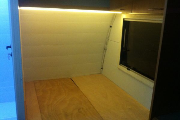 • במרחב הקראוון קיימת מיטה המשתנה לפינת ישיבה כאשר השולחן הופך למיטה.